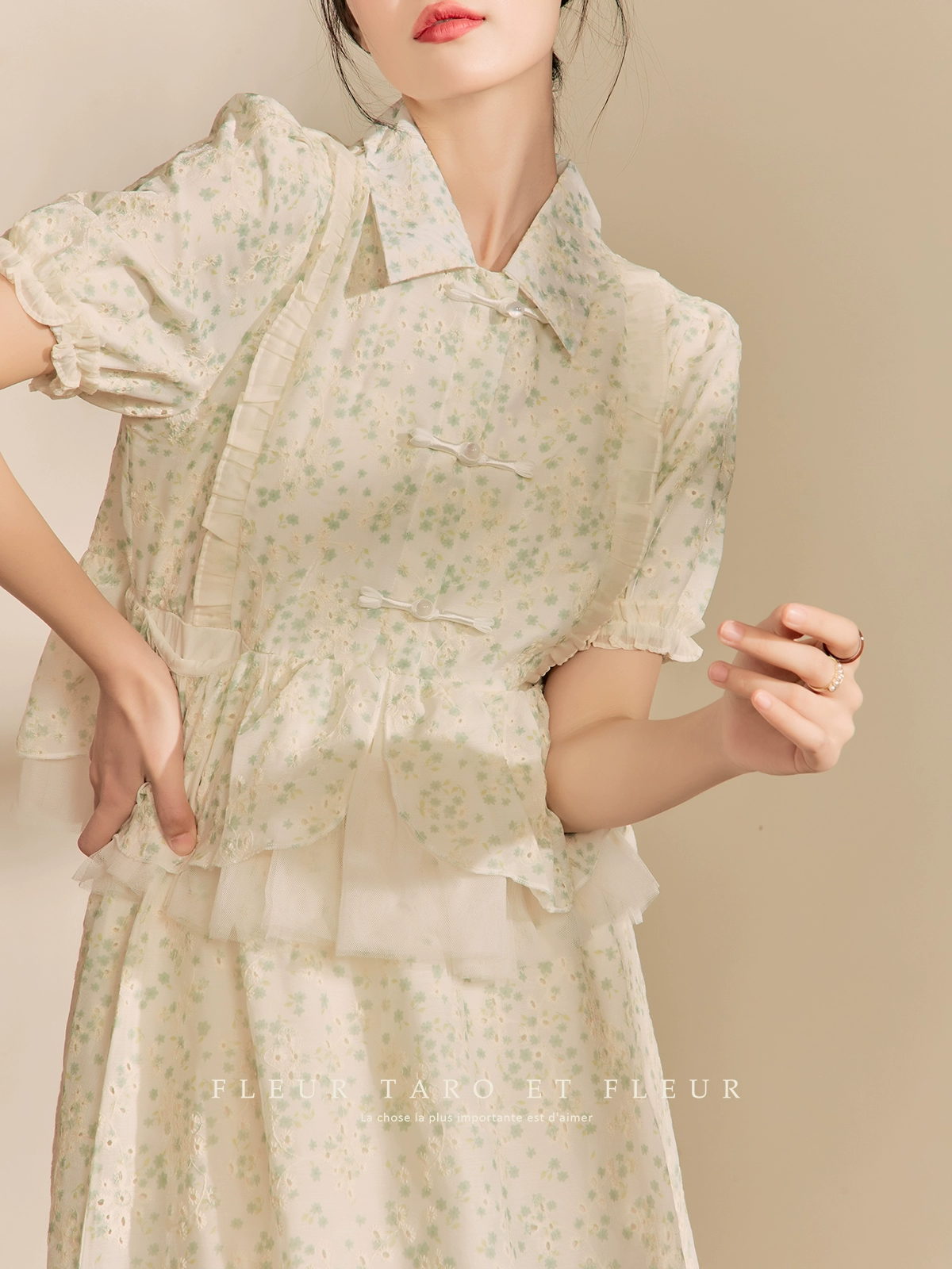 Joe and flower bottle suit playful short -sleeved top flower bottle