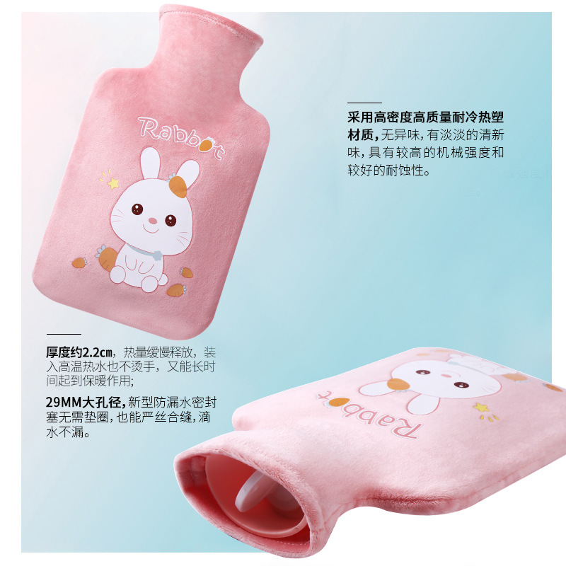 Jojoba New Cartoon Water Injection Hot Water Bag Plush Cloth PVC Warm Water Bag Creative Student Thickened Hand Warmer