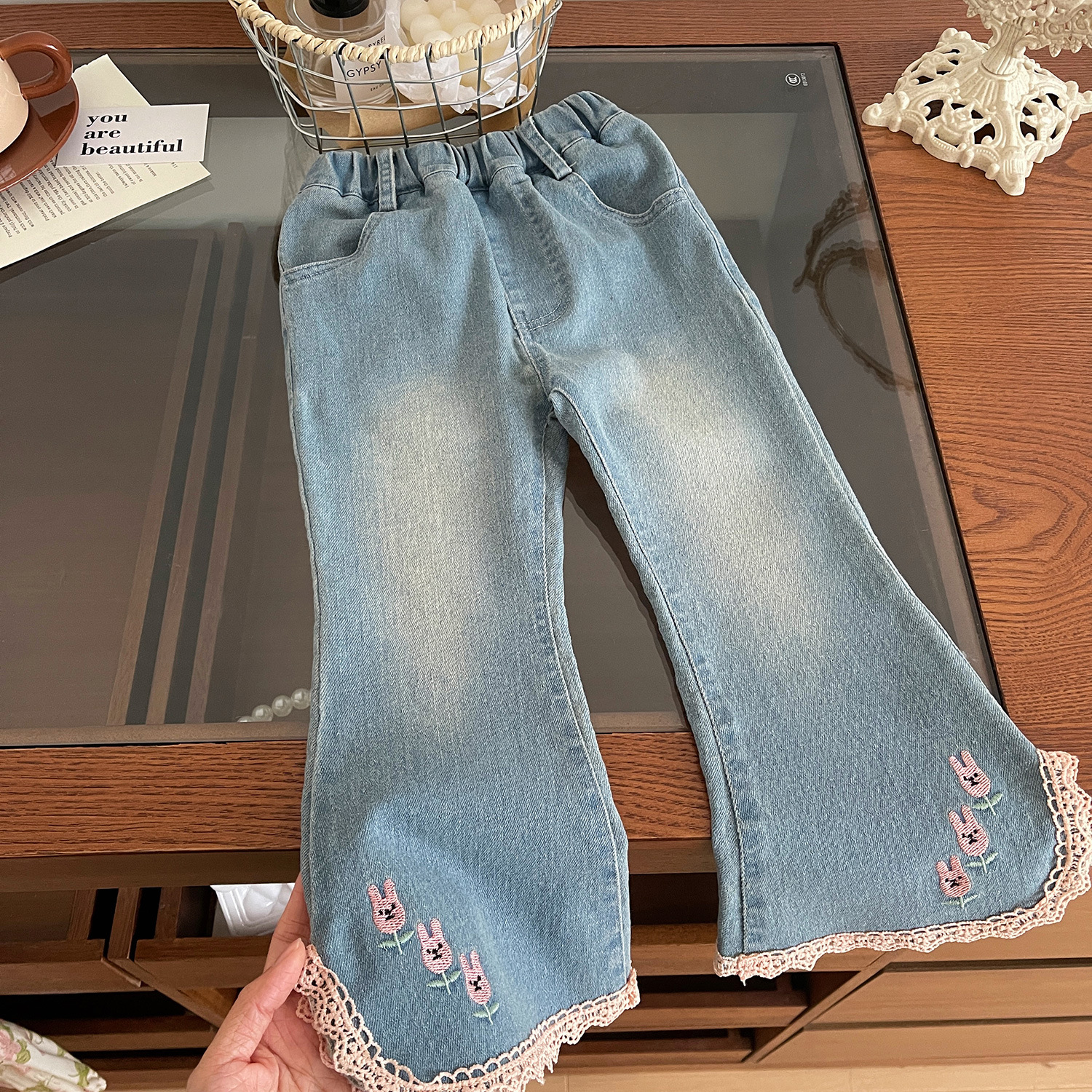Joker 005 new 2024 spring-floral embroidered shirt lace with jeans doll foot Korean 003
