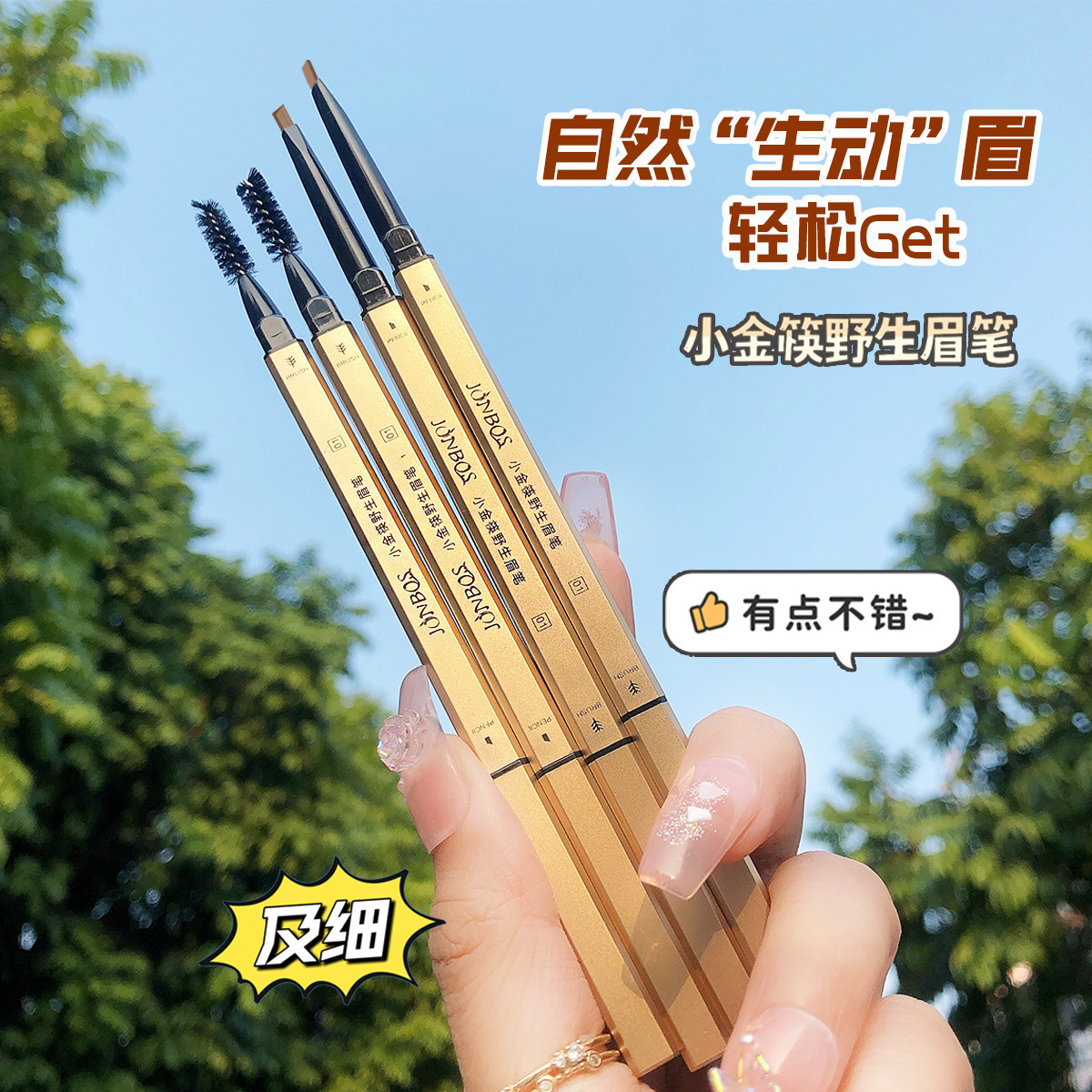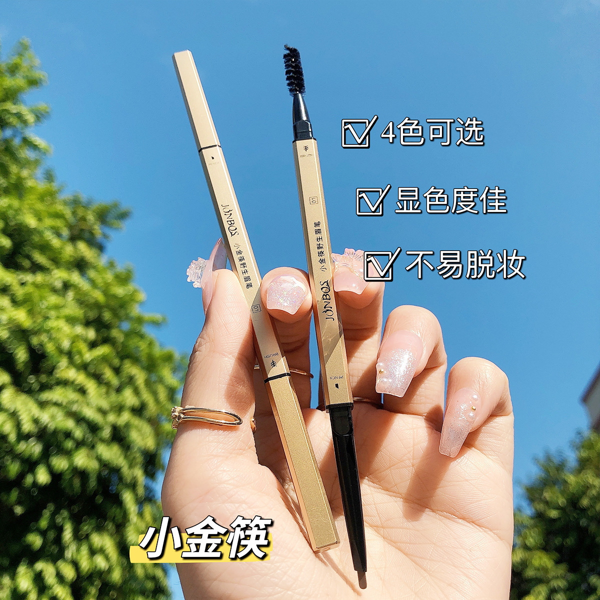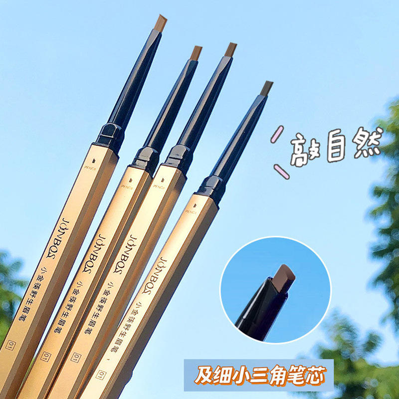 JONBOS Small Gold Chopsticks Wild Eyebrow Pen Waterproof Not Easy to Decolorization Automatic Rotating Very Fine Triangle Eyebrow Pen
