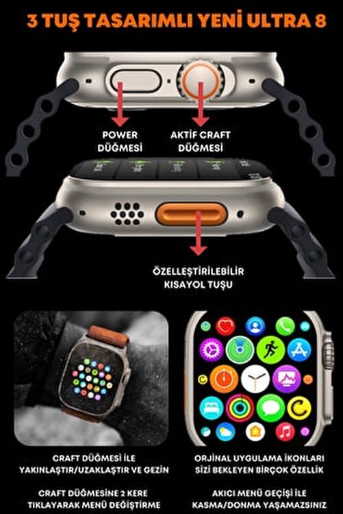 | nameOriginal | JOYTECH Watch 8 T800 Ultra 45 Mm 1.99 Inch 3 Buttons Active Turkish Menu Compatible with All Phones Smart Watch |