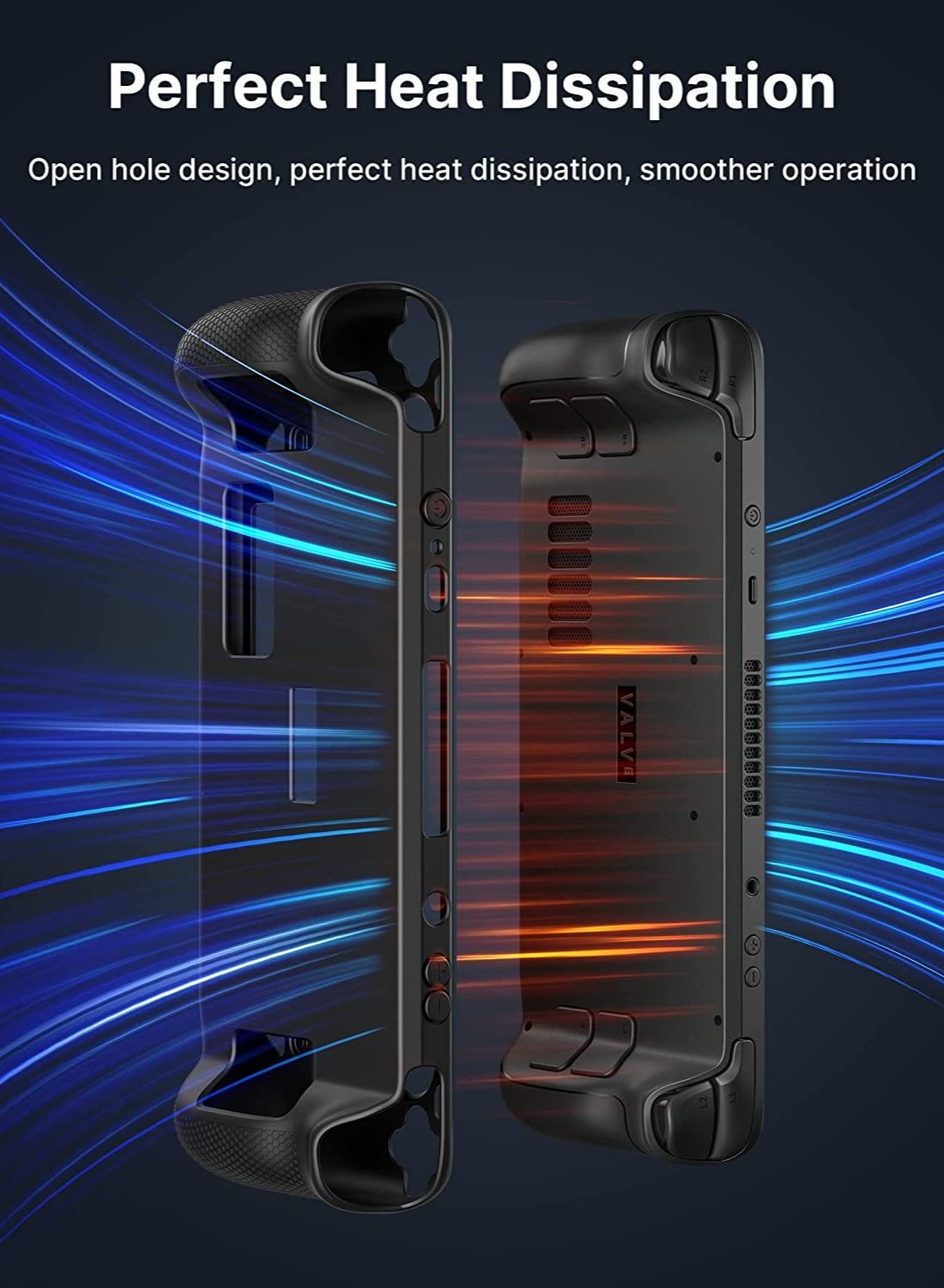 All of the cutouts are precisely aligned, ensuring that every port and button is easily accessible without obstruction. The case also features opening holes at the back of the Steam Deck to facilitate excellent heat dissipation.