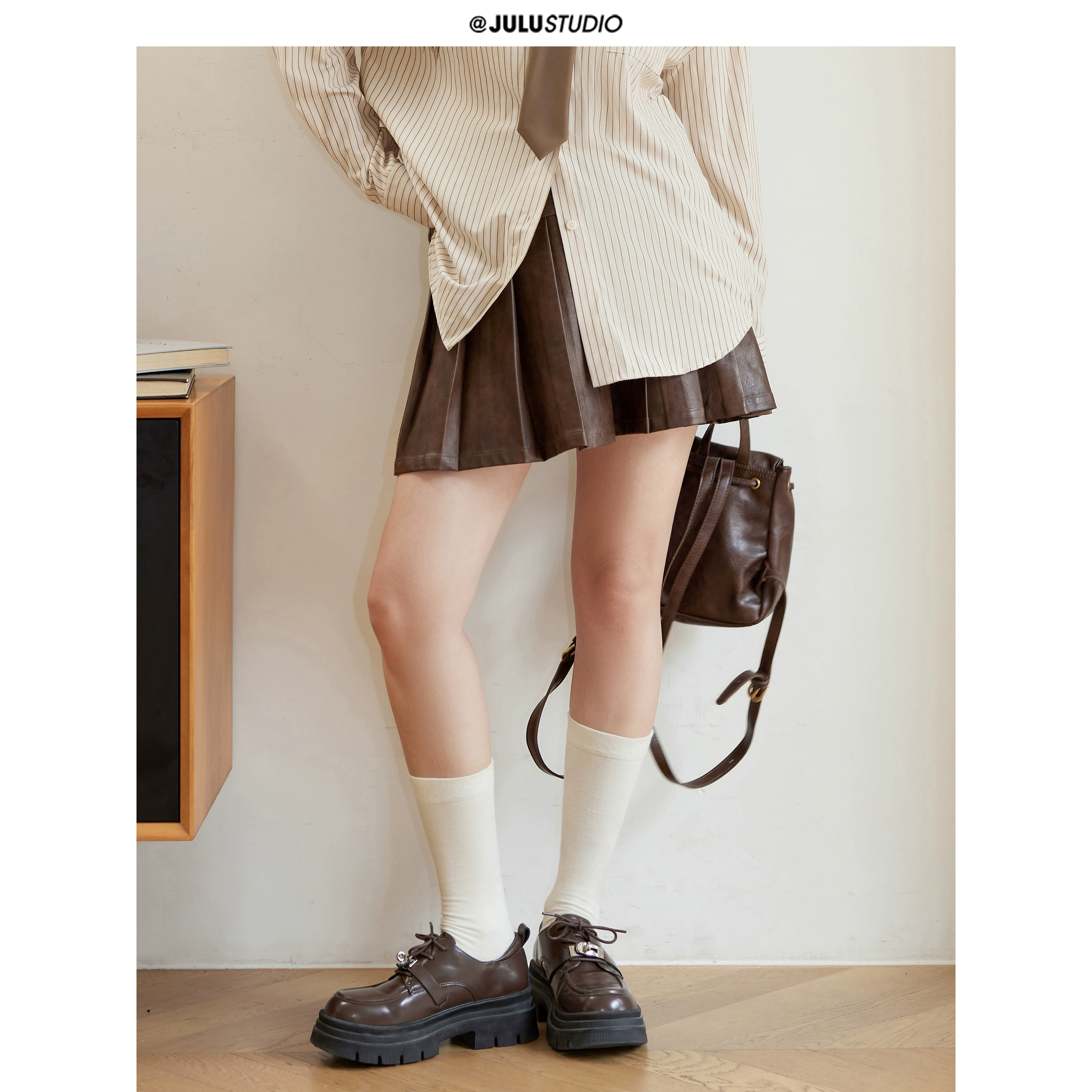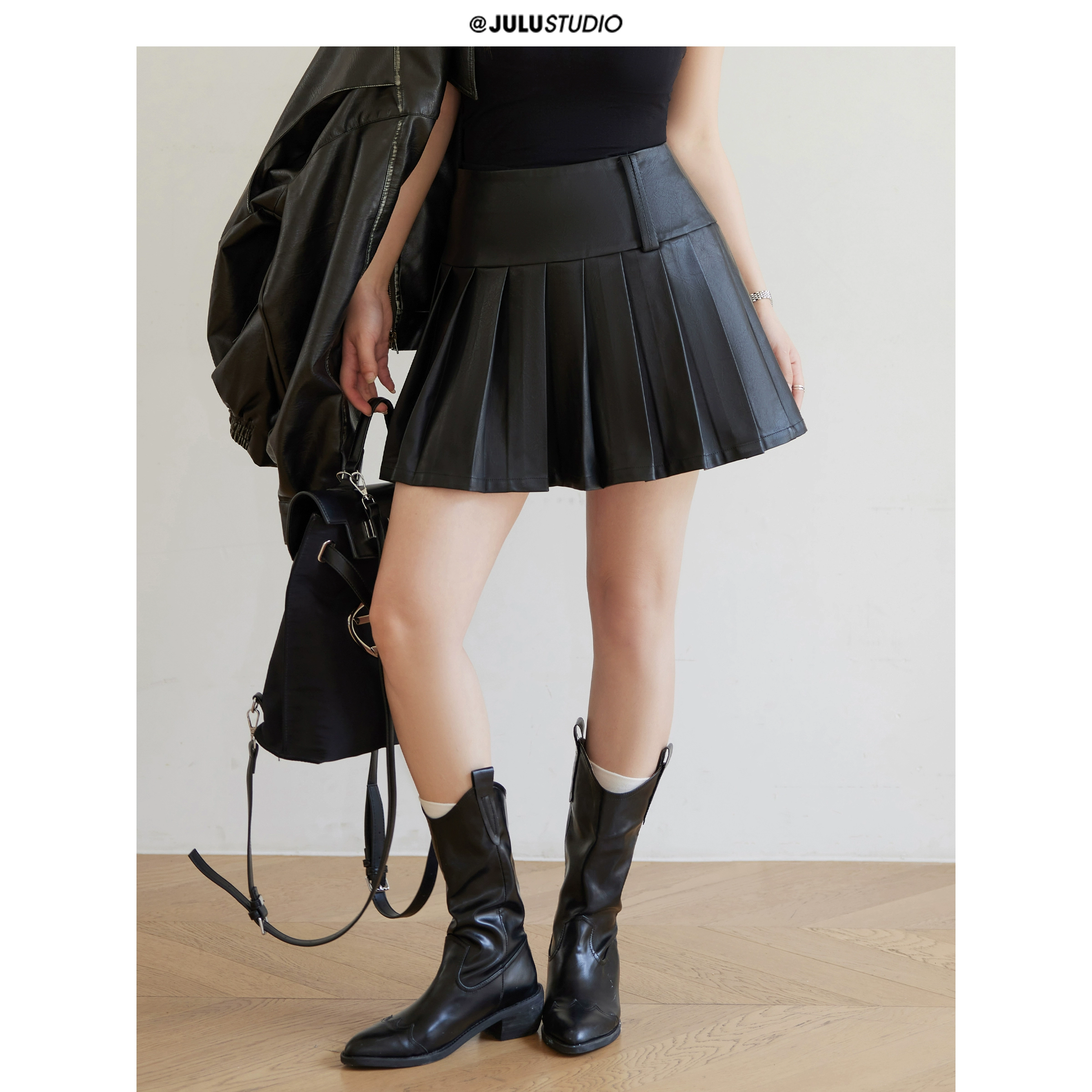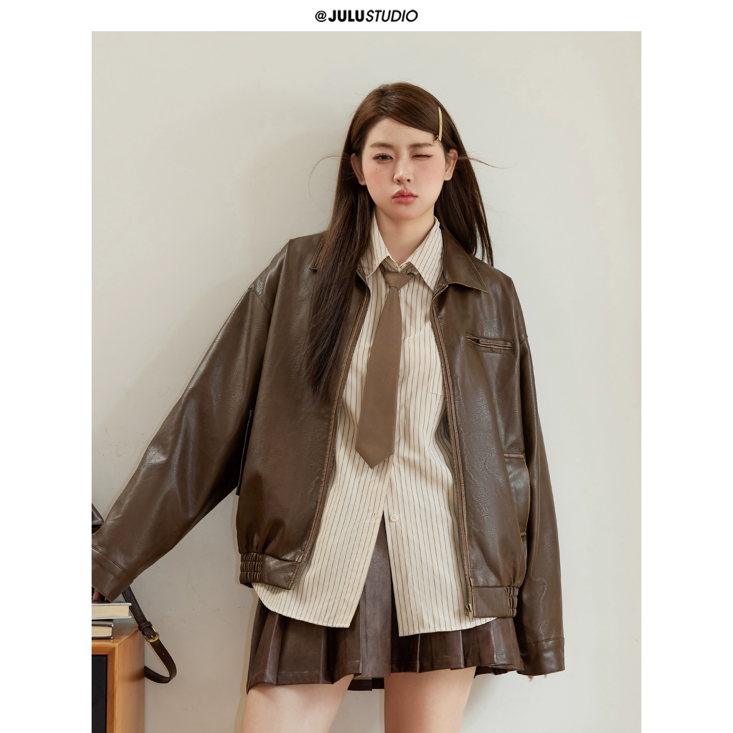 | nameOriginal | Julu Studio "Retro Notting Hill" slightly fat mm loose and cool leather jacket + pleated skirt suit |
