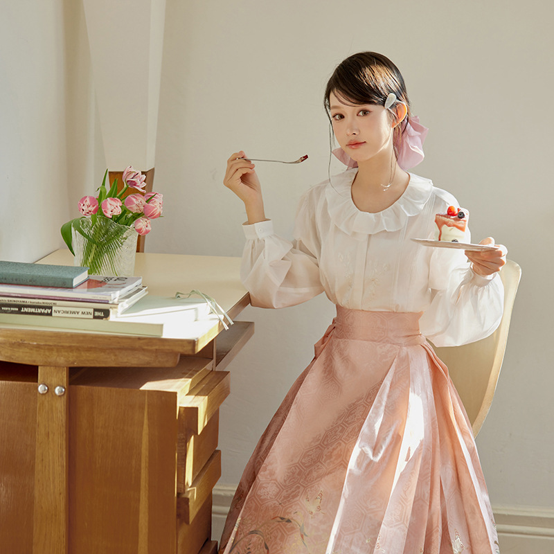 July Evening Original Hanfu Berry Wen Ying Cry Eight-point Horse-faced Skirt Light Cloud Crewneck Shirt Daily Han Element New