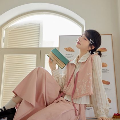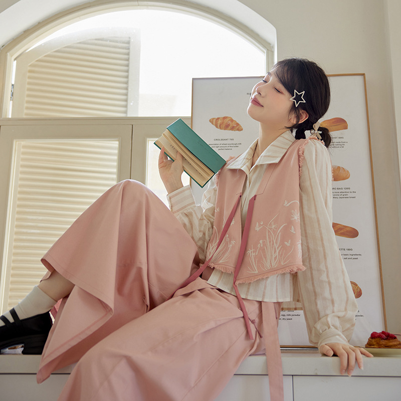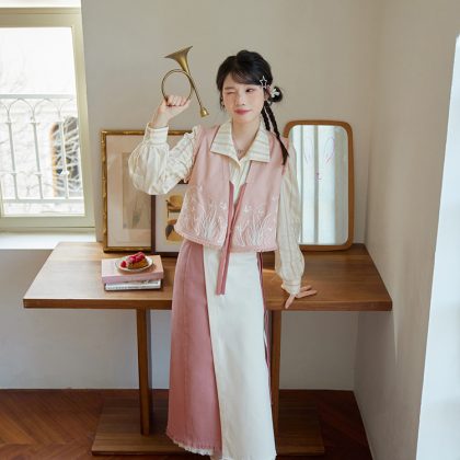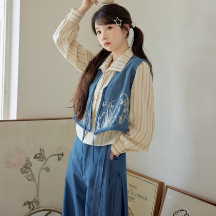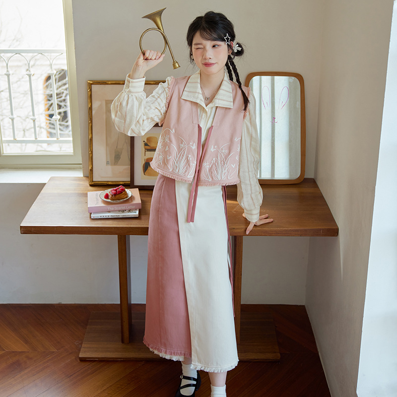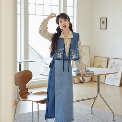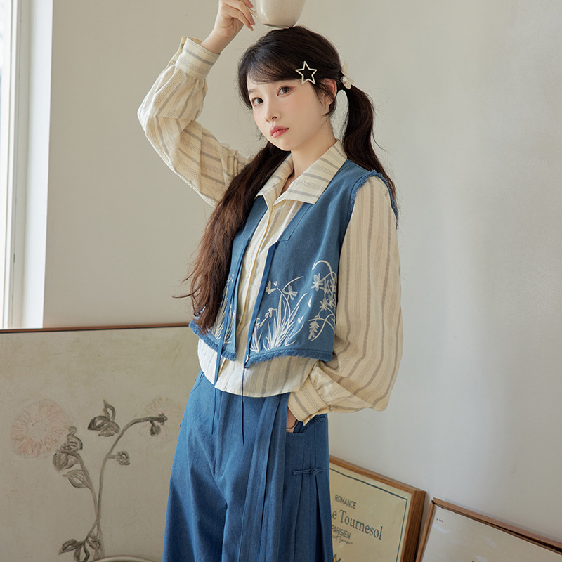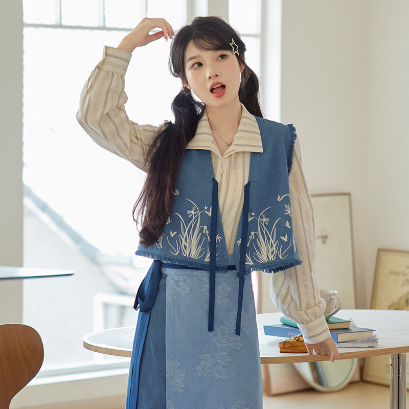 | nameOriginal | July Evening Original Hanfu Celadon Language National Style Embroidered Vest Striped Shirt Denim Spin Dress Suit Daily Women |