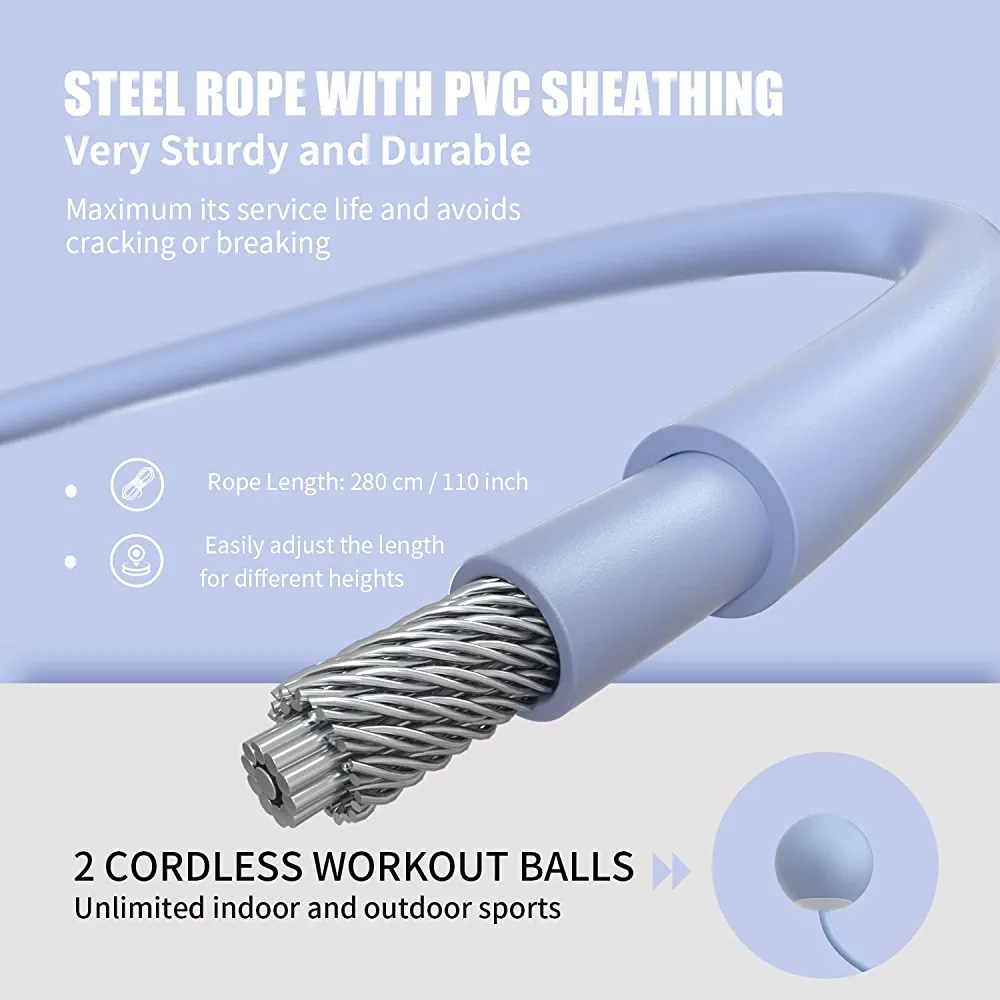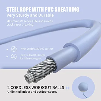 The rope is designed with high-quality ball bearings and bearing stabilizers that provide a smooth and effortless jumping experience while preventing twisting or winding of the rope. The steel rope is protected by PVC sheathing, making it durable and resistant to bending, deformation, cracking, or breaking.