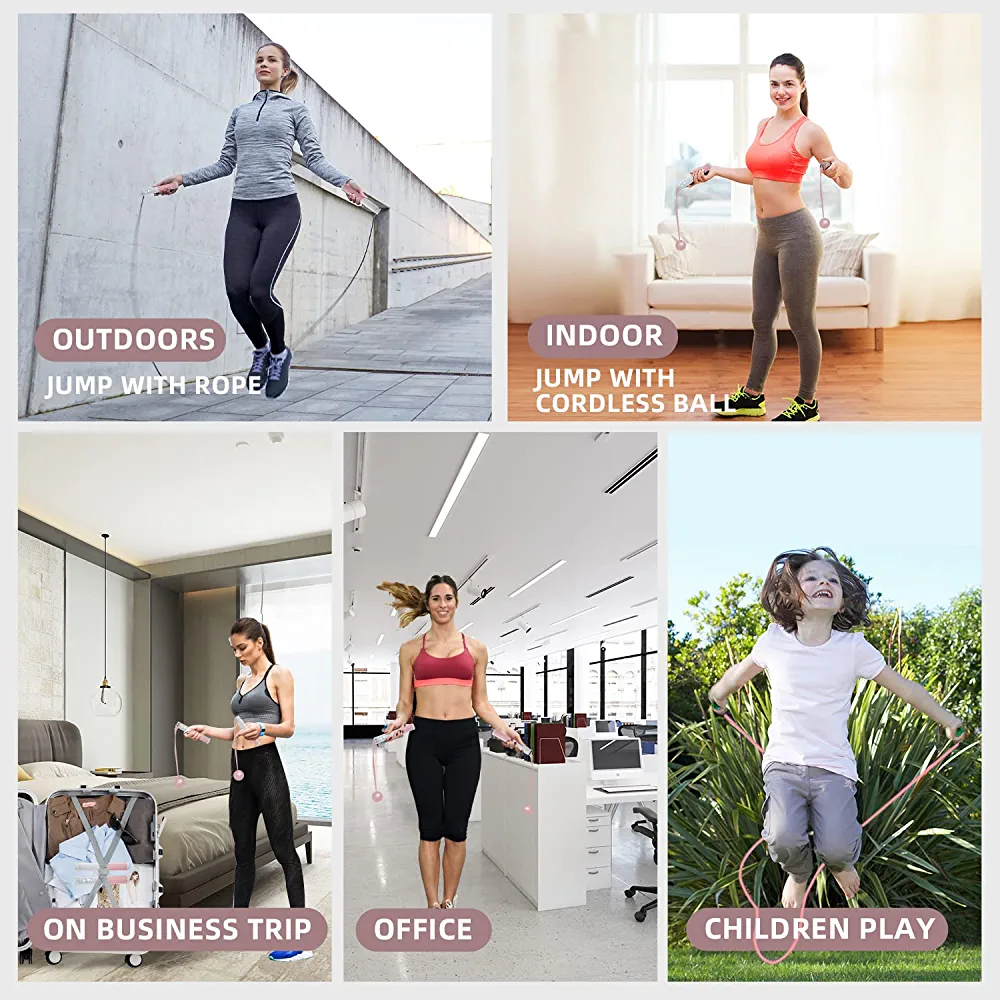This rope can be used cordless or with a rope, and the short leads attached to it mimic the feel of skipping with a real rope, making it ideal for beginners, kids, or fitness enthusiasts who exercise in narrow spaces.