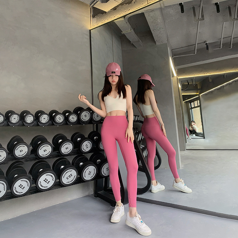 JumpingCat fitness pants women's high waist hip lifting training running quick-drying nude tight pants sports yoga pants