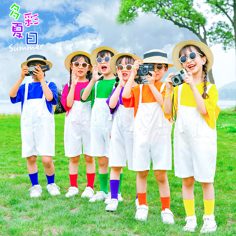 | nameOriginal | June 1 Children's Costume Candy Color Kindergarten Graduation Class Costume Cotton T-shirt Overalls Cheerleading Costume |