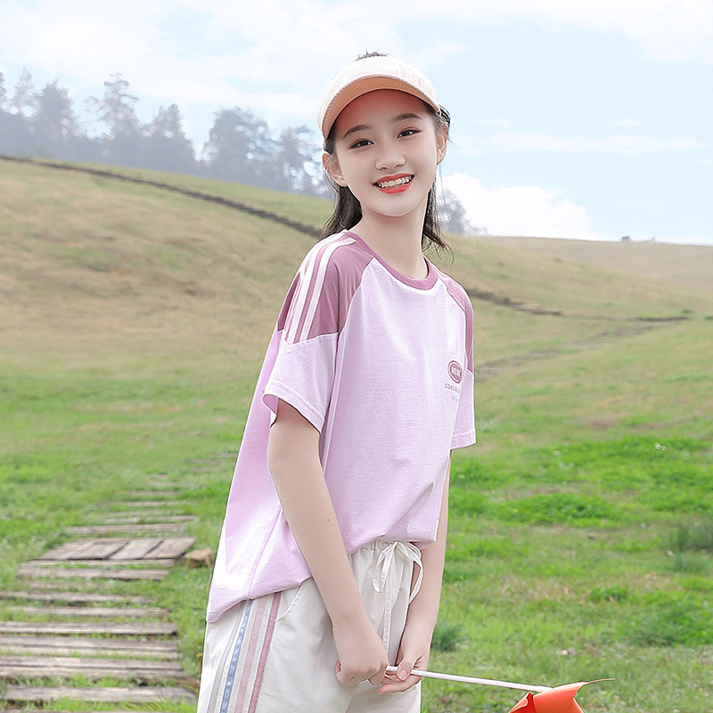 | nameOriginal | Junior high school students T-shirt short sleeve girl summer 2021 new high school students big children purple color matching half sleeve 210862 |