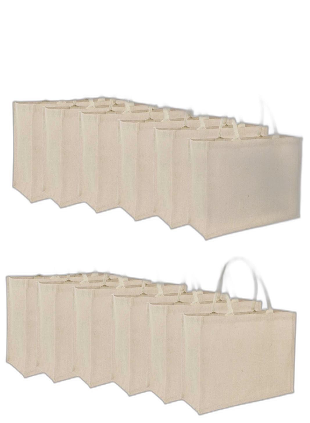 12-Piece Jute Tote Shopping Bag Waterproof Coating With Soft Handle