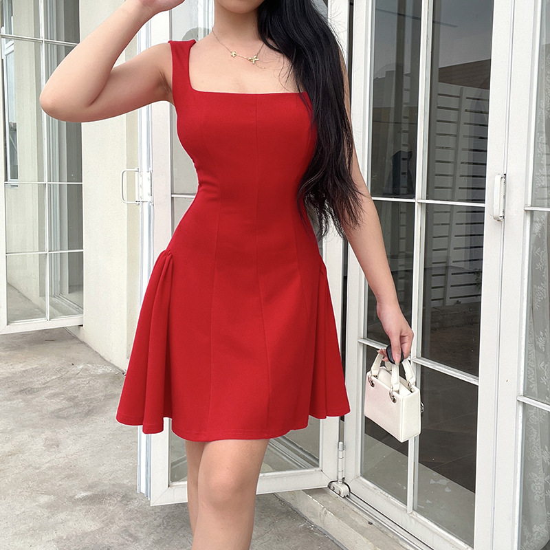 | nameOriginal | JY24063 cross-border Spring and Summer 2024 new square collar slim skirt European and American style tight waist A swing vest dress women |
