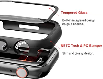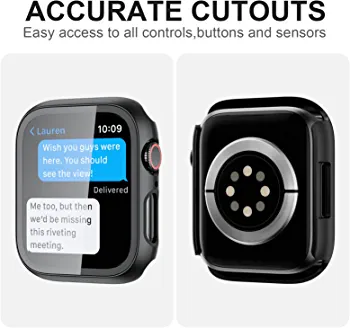 JZK 2-Pack Apple Watch Series 8/7 45mm Case with Tempered Glass Screen Protector. Slim and full hard PC protective cover with ultra-thin design in black color.
