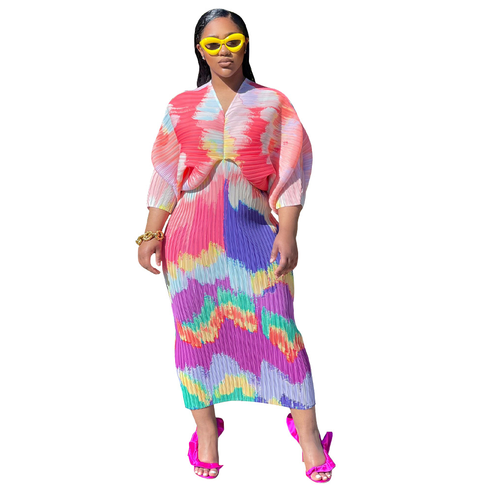 | nameOriginal | K10263 Independent Station European and American Women's Cross-border Source Summer Explosions Plus Color V-Neck Bat Sleeve Printed Dress |