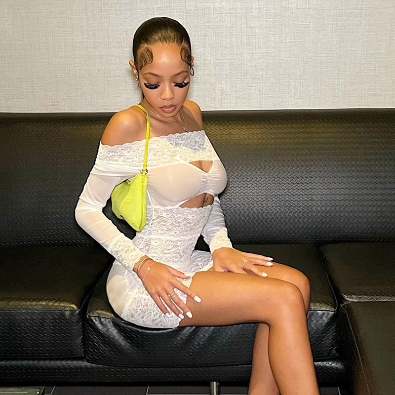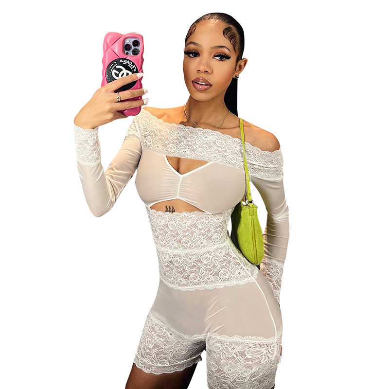 | nameOriginal | K23RP586 European and American style 2023 new women's sexy hot girl lace mesh perspective high waist slim jumpsuit |