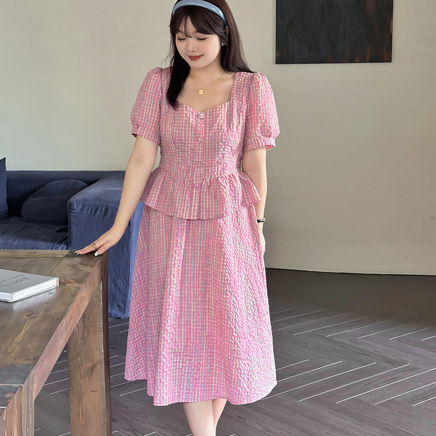 | nameOriginal | k2419 plus size women's clothing 2024 Summer French style top + long skirt fashion suit fat sister suit |