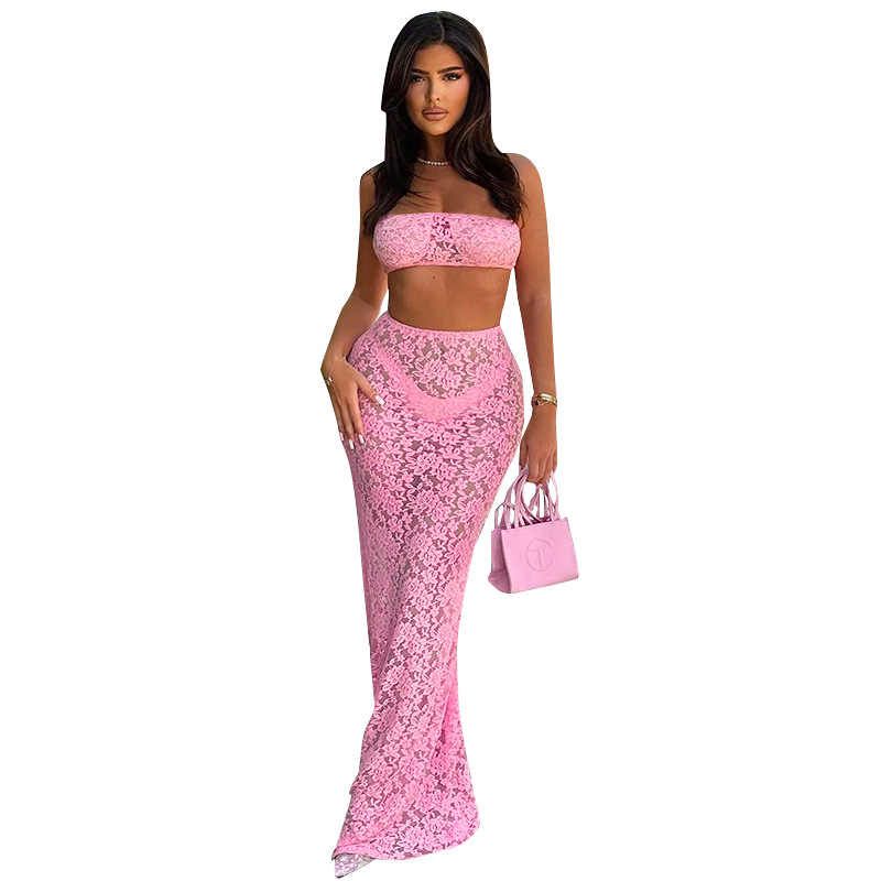 | nameOriginal | K24ST155 European and American Women's Summer New Sexy Lace Sling Top High Waist Perspective Long Dress Two-piece Suit |