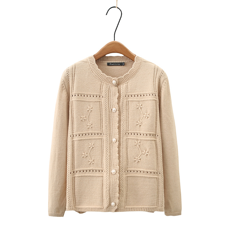 | nameOriginal | K6 plus size women's autumn clothing new chubby girl slimming loose all-match casual knitted pearl buckle embroidered cardigan 2331 |