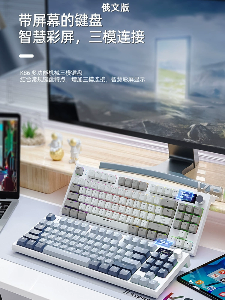 | nameOriginal | K86 with screen RGB three-mode wired Bluetooth 2.4G game office double keycap Russian and Korean mechanical keyboard |