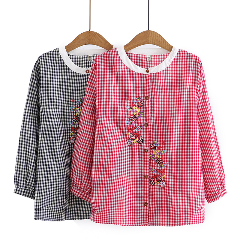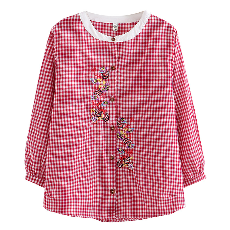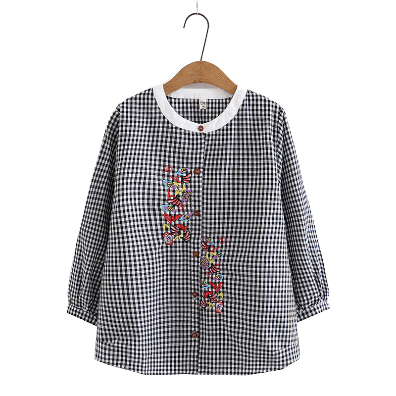 | nameOriginal | K94 Large Size Women's Autumn New Fat Girl Slimming All-match Round Neck Cotton Plaid Embroidered Shirt 5151 |