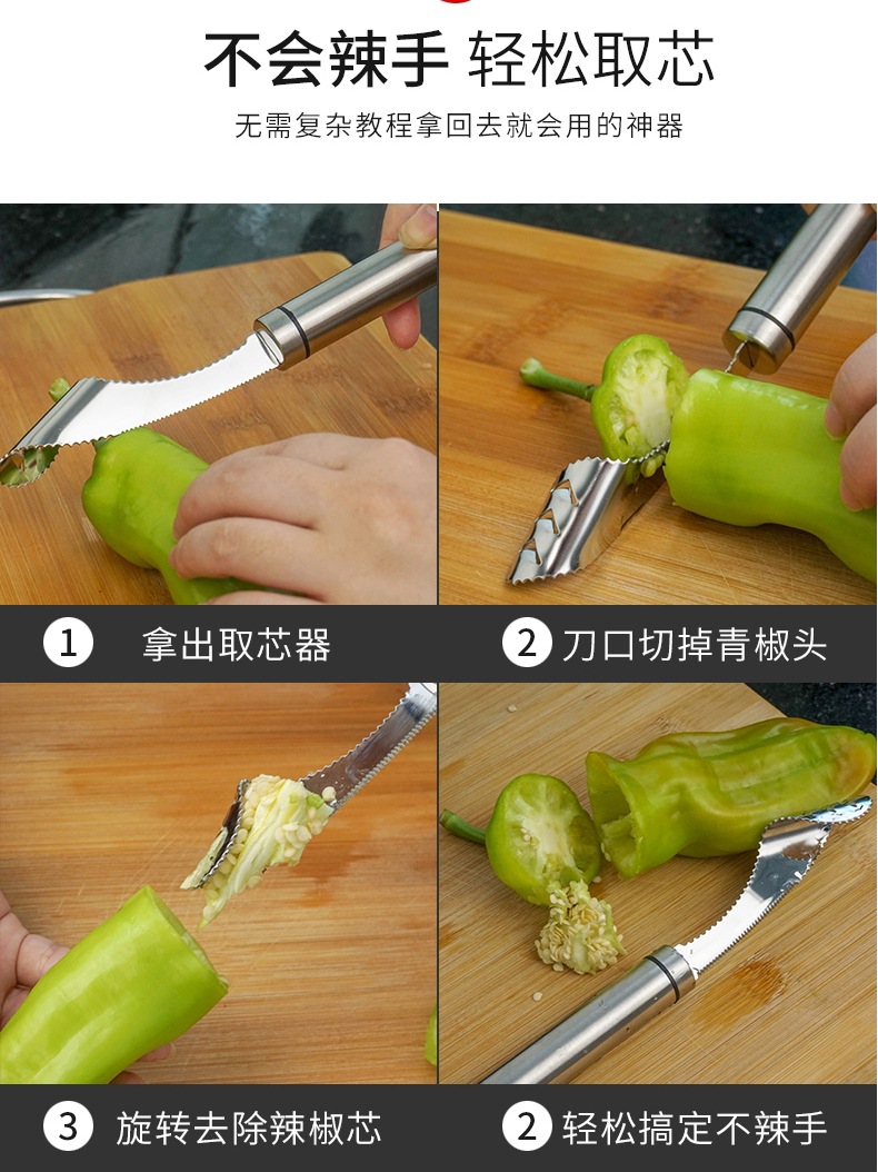 | nameOriginal | K9HX wholesale 304 stainless steel pepper corer tiger skin green pepper seed remover multi-function corer kitchen small |