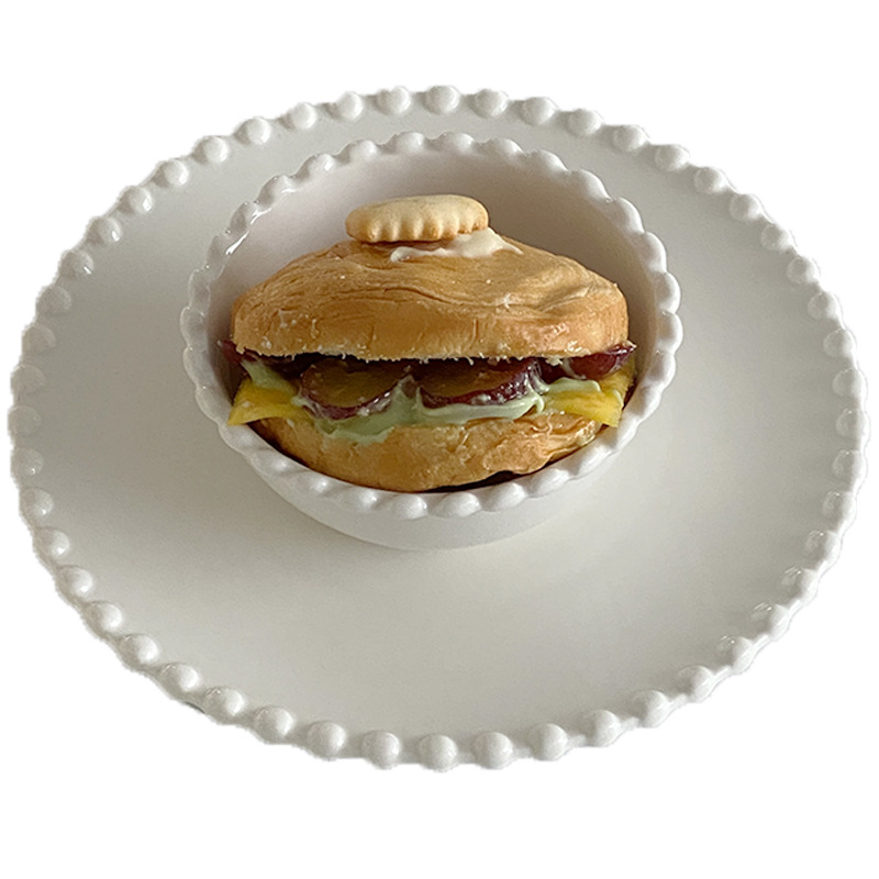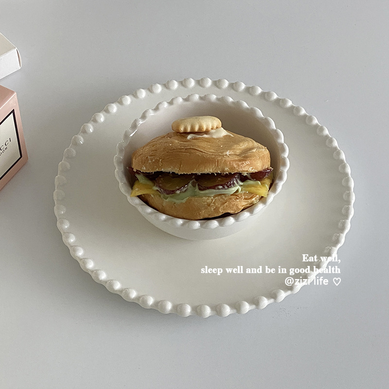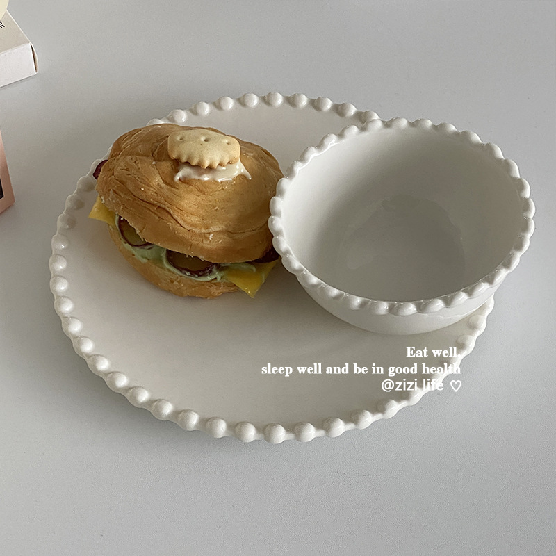 K9HX wholesale ins Korean Pearl edge white ceramic plate retro simple bead dot ring tableware plate bowl Western food