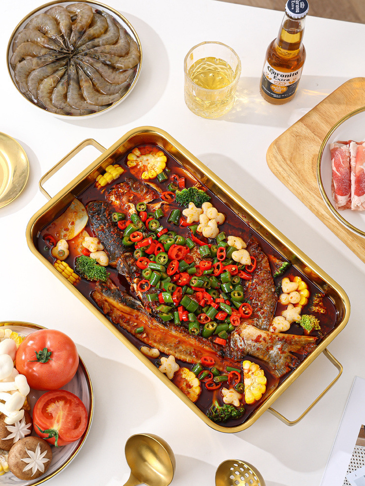 | nameOriginal | K9HX wholesale Korean stainless steel grilled fish plate rectangular household grilled fish tray induction cooker baking plate commercial paper bag |