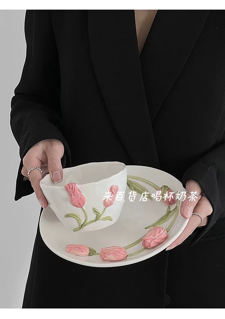| nameOriginal | K9HX wholesale Tulip Plate three-dimensional relief ins same style hand-painted ceramic cup bowl ceremony sense high-looking meal |