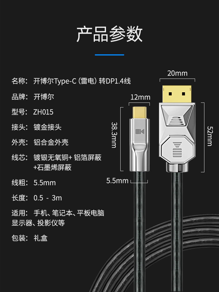| nameOriginal | Kaiboer type-c to DP1.4 line 8K connection cable suitable for Apple notebook mobile phone to monitor 240hz high-definition cable USBc conversion displayport Thunderbolt 3 to DP same screen cable |