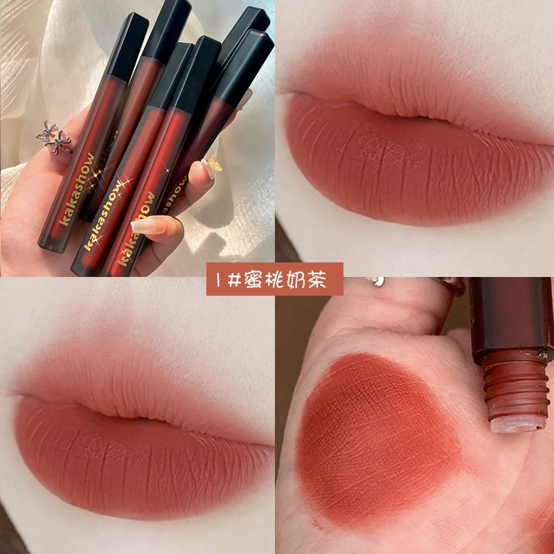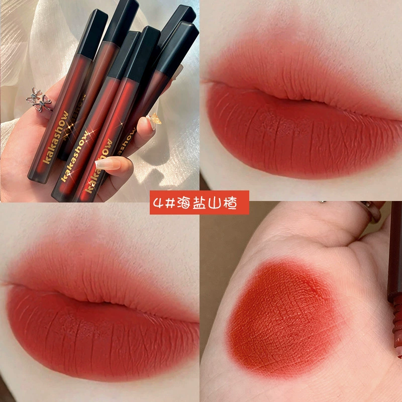 | nameOriginal | kakashow black satin lip glaze velvet matte lip glaze whitening lipstick moisturizing not easy to stick lip gloss black silk lip glaze |