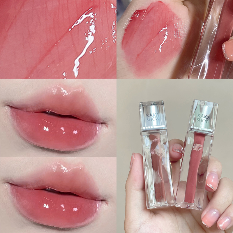 kakashow Transparent Mirror Water Lip Glaze Water Clear Doodle Moisturizing Lipstick White Not Easy to Stick Cup Lip Gloss