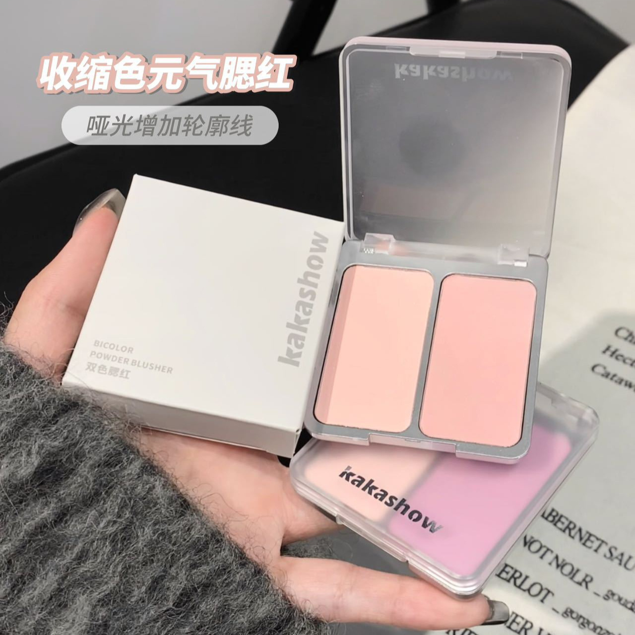 | nameOriginal | kakashow Two-color Blush Light Makeup Milk Powder Low Saturation Shrinkage Swelling Color Gills Purple Matte Brightening |