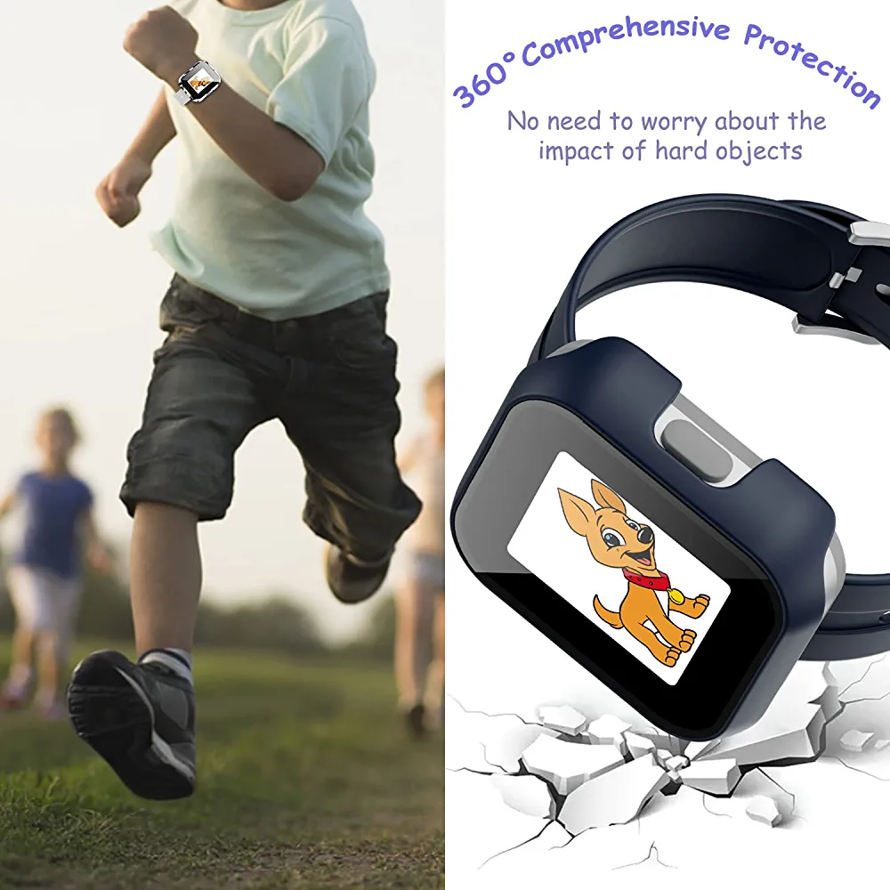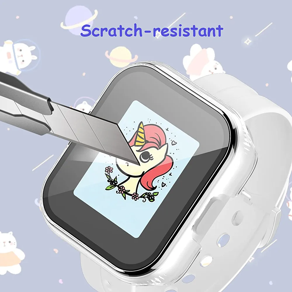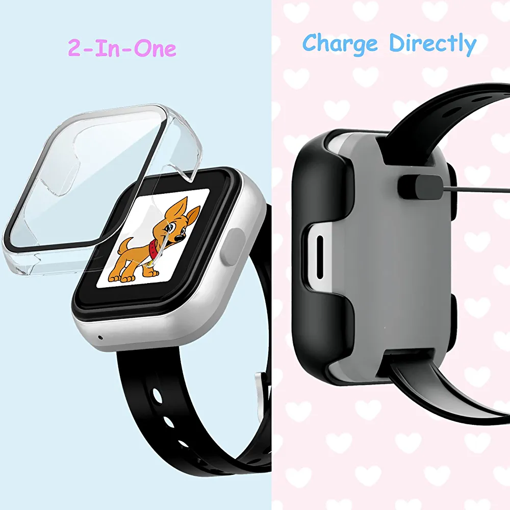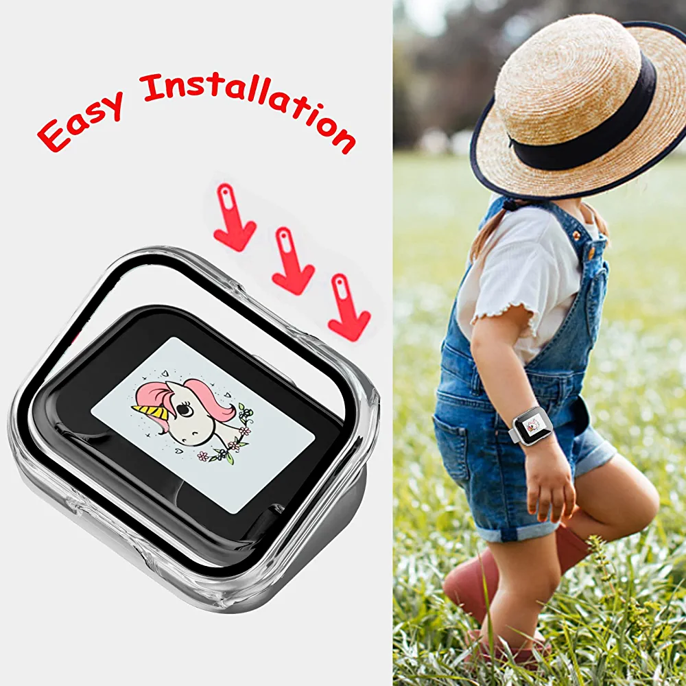 This product description is for a protective case designed specifically for the SyncUp Watch. The case is made with a tempered glass screen protector that showcases the watch’s vibrant colors while providing extra protection. It is a 2-in-1 hard case that includes an ultra-thin clear glass screen protector to safeguard the screen and edges from scratches, scuffs, and bumps. The tempered glass screen protector is highly transparent and retains the original touch sensitivity, making it easy for kids to use. The case is designed with precise cutouts that align with all controls, buttons, and sensors, making it easy to take off and put on. The case also allows for direct charging of the watch. The package includes two durable hard PC cases for the SyncUp Watch, wet and dry wipes, and reliable customer service. If there are any quality issues with the product, customers can contact the seller via email, and they will resolve the issue within 24 hours.