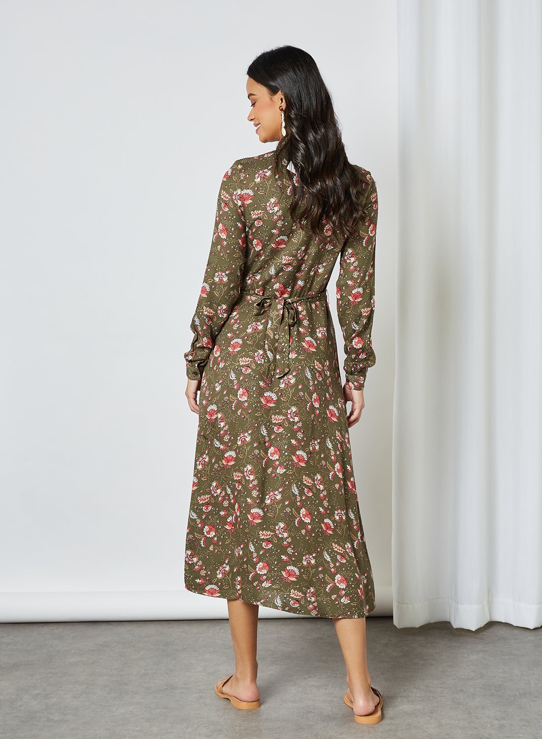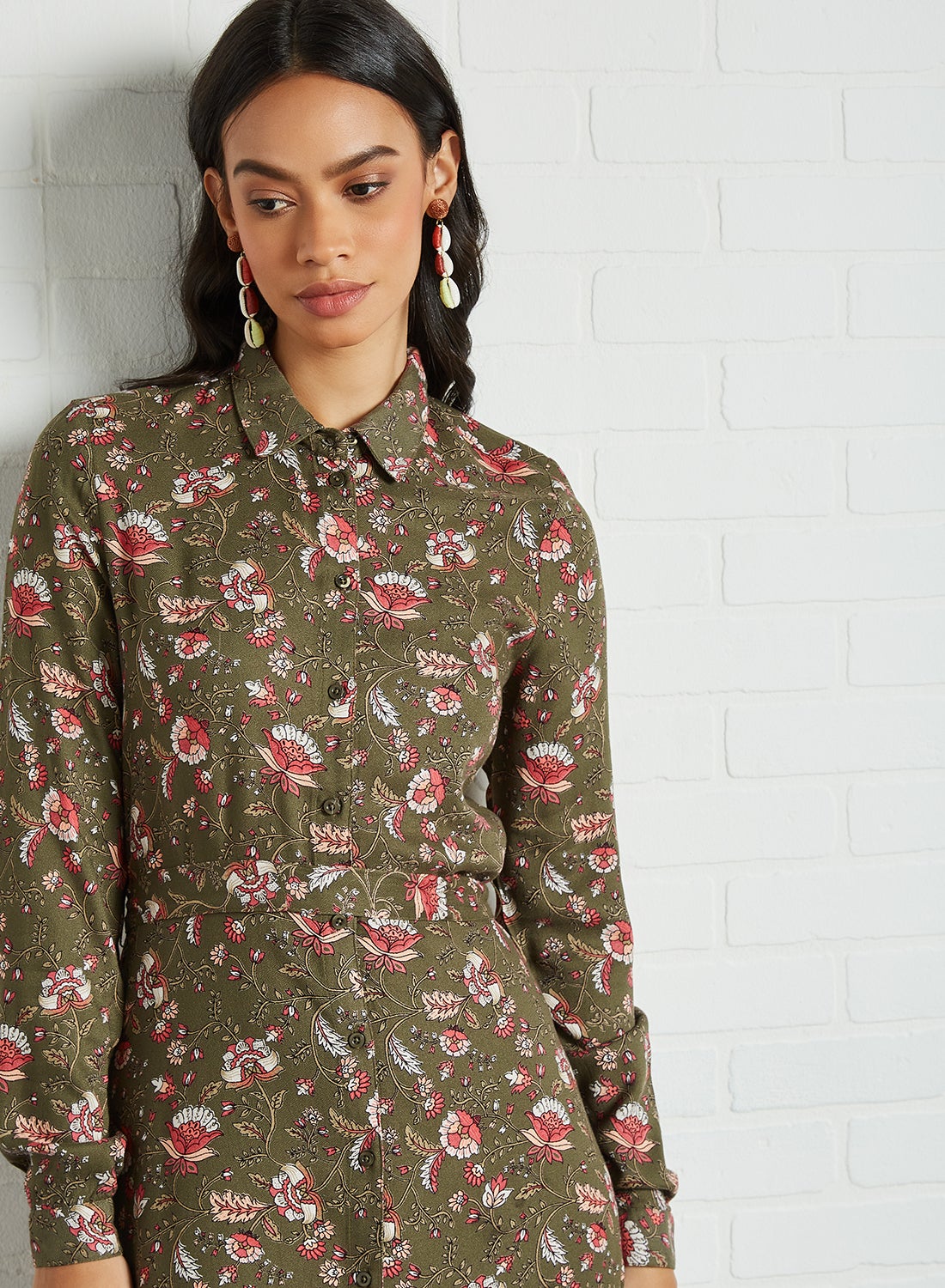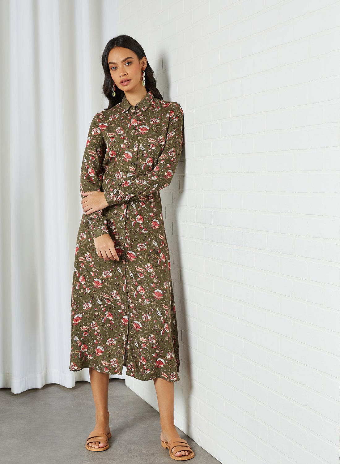 This versatile dress can be dressed up or down effortlessly with a pair of heels or sandals. It features a collared neckline and long sleeves, adorned with an all-over floral print. The midi length adds a touch of elegance, while the soft and comfortable fabric ensures a comfortable fit. For best results, please follow the care label instructions when washing.
