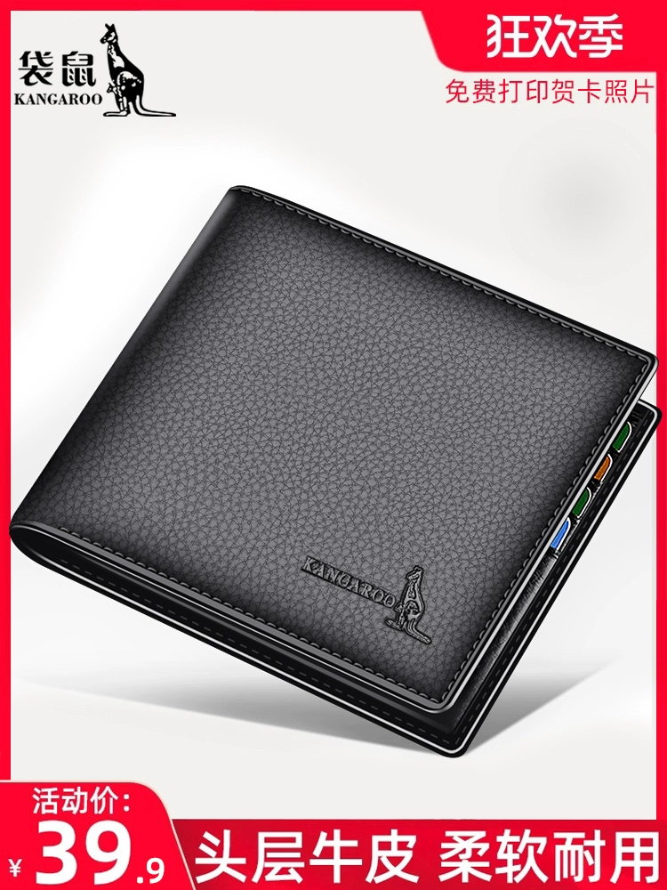 | nameOriginal | Kangaroo wallet men's genuine leather short 2024 new first-layer cowhide wallet integrated card holder thin wallet father |