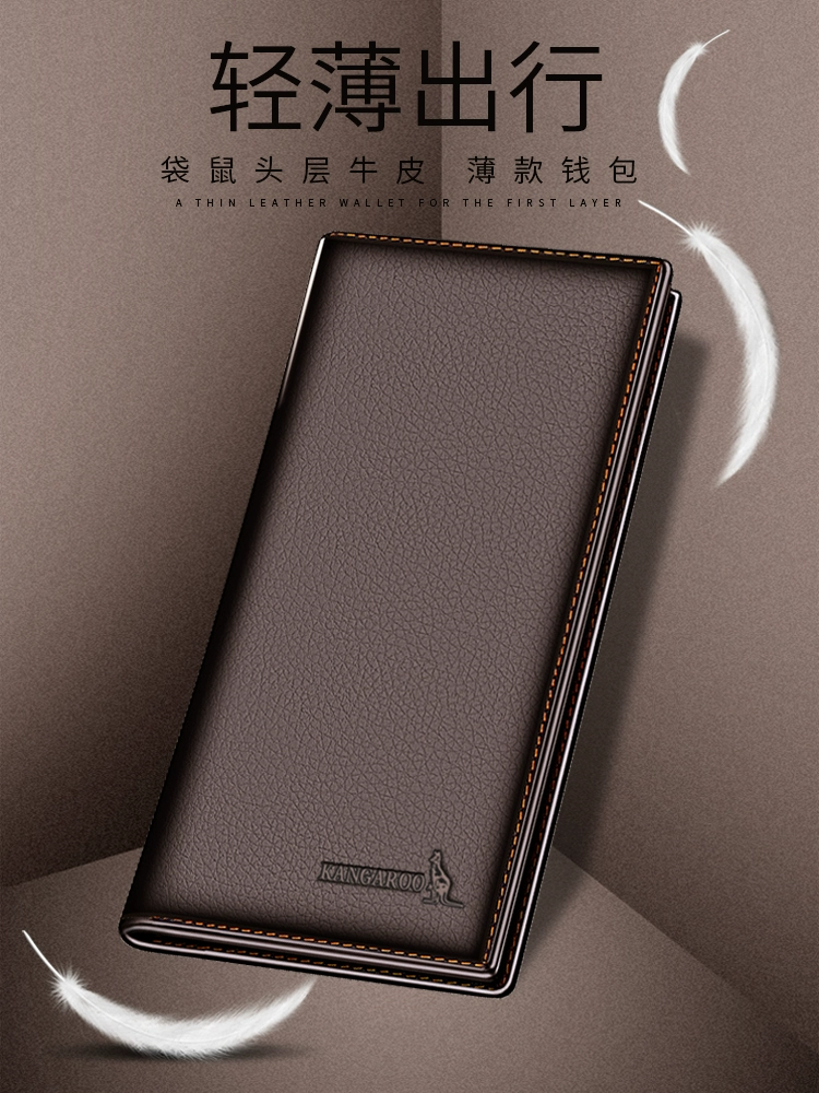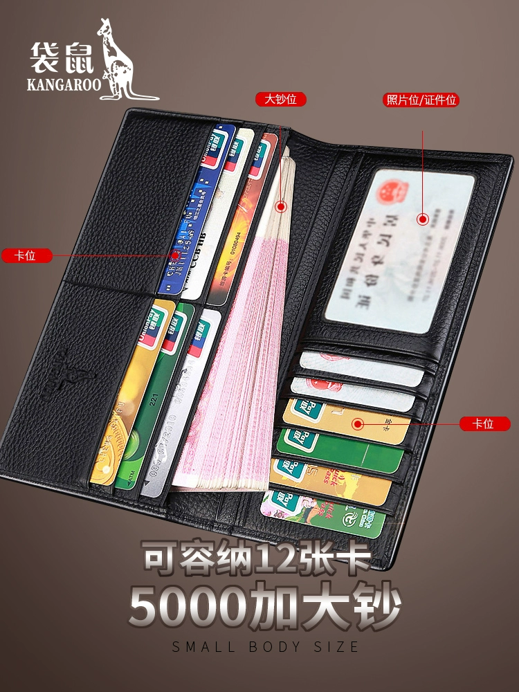 | nameOriginal | Kangaroo wallet men's long genuine leather 2024 new ultra-thin first layer cowhide leather zipper wallet soft leather wallet handbag |