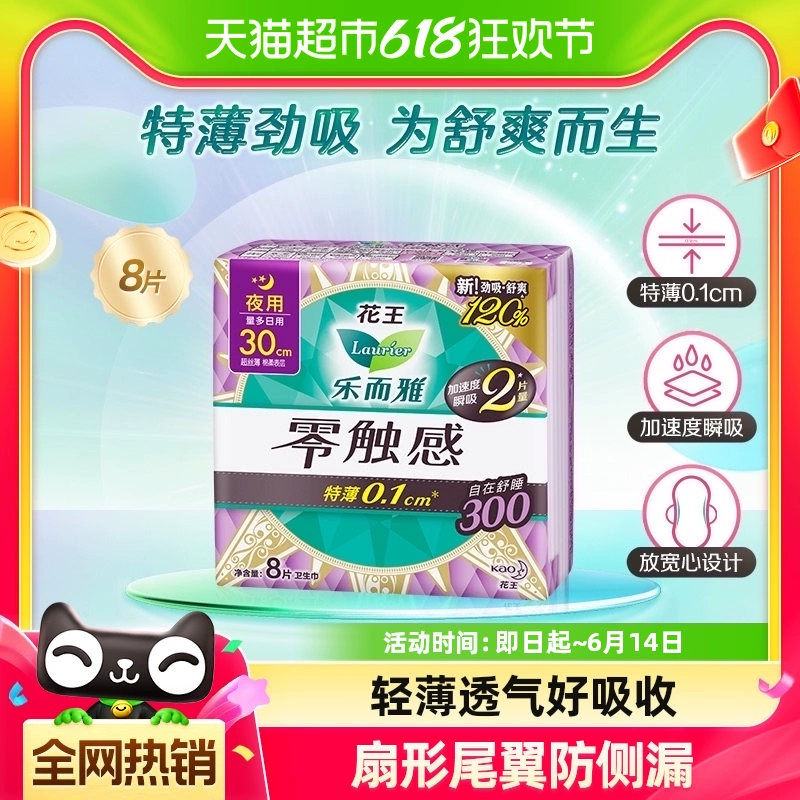 | nameOriginal | Kao Leerya sanitary napkin zero-touch night sanitary napkin 30cm*8 pieces extra thin soft close-fitting female aunt napkin |