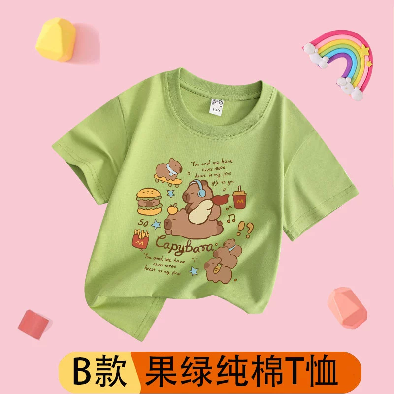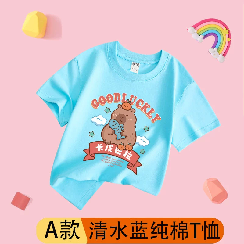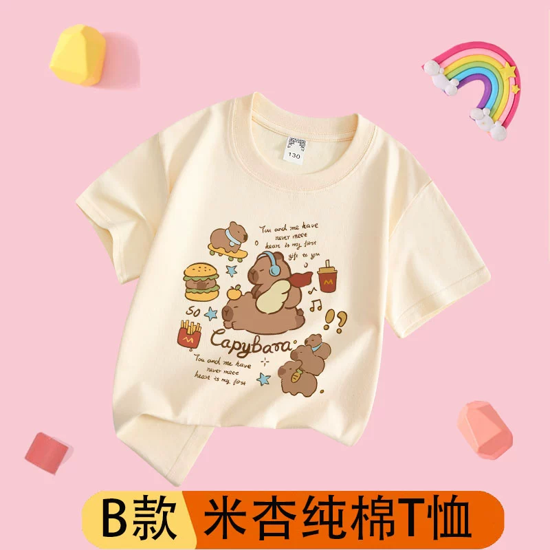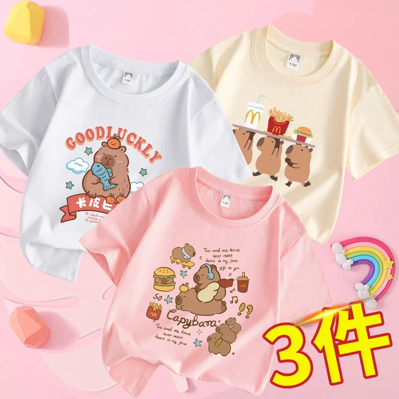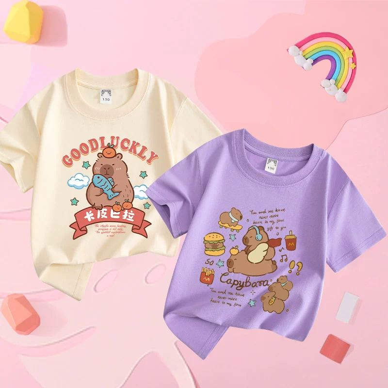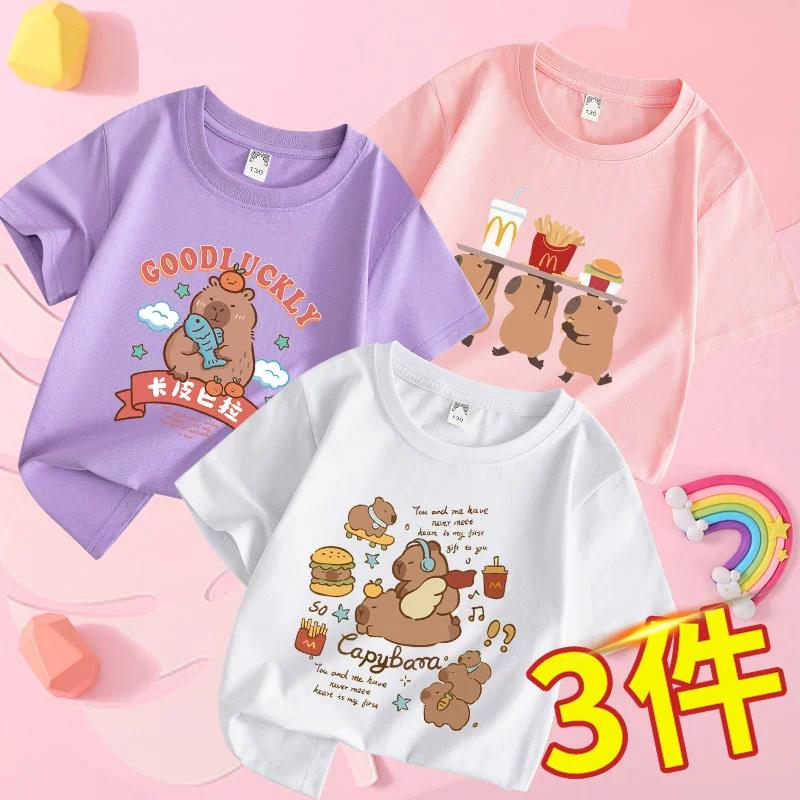 | nameOriginal | Kapibala girls short-sleeved T-shirt pure cotton medium and large children 2024 baby girl new half-sleeved style bottoming shirt summer T |