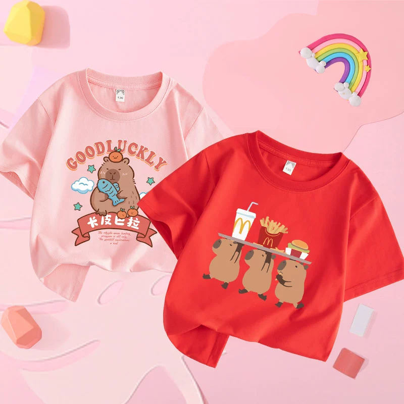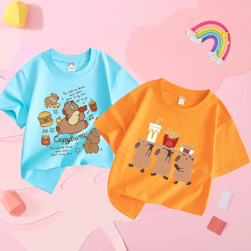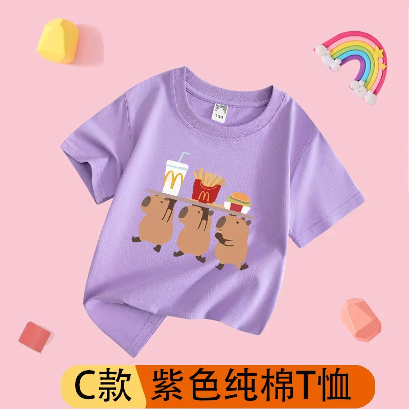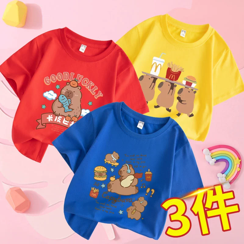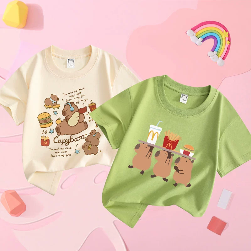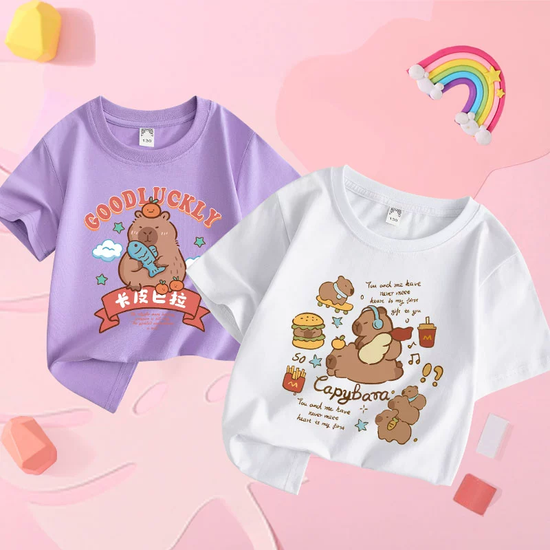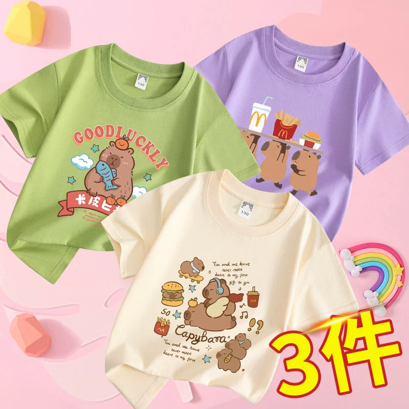 | nameOriginal | Kapibala girls short-sleeved T-shirt pure cotton medium and large children 2024 baby girl new half-sleeved style bottoming shirt summer T |