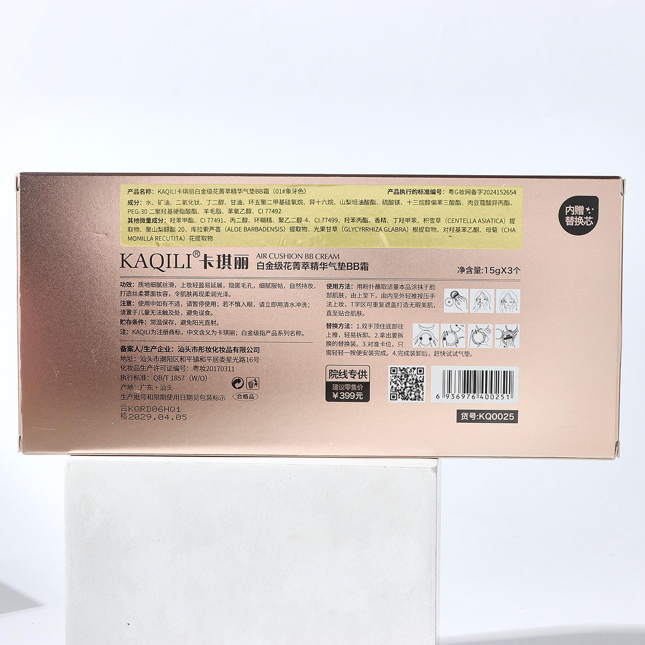 Kaqili Platinum Flower Essence Air Cushion BB Cream Lasting Not Easy to Take off Makeup Not Card Powder Air Cushion Set Wholesale