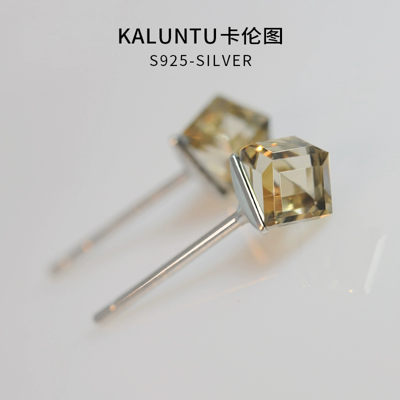 Karentu 925 sterling silver brown crystal earrings for women, exquisite mini small earrings, simple literary and elegant earrings