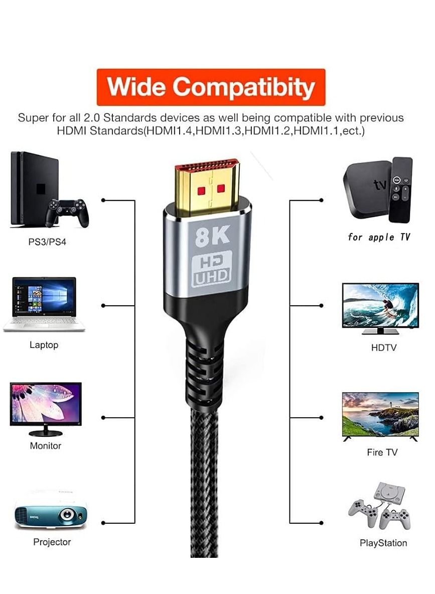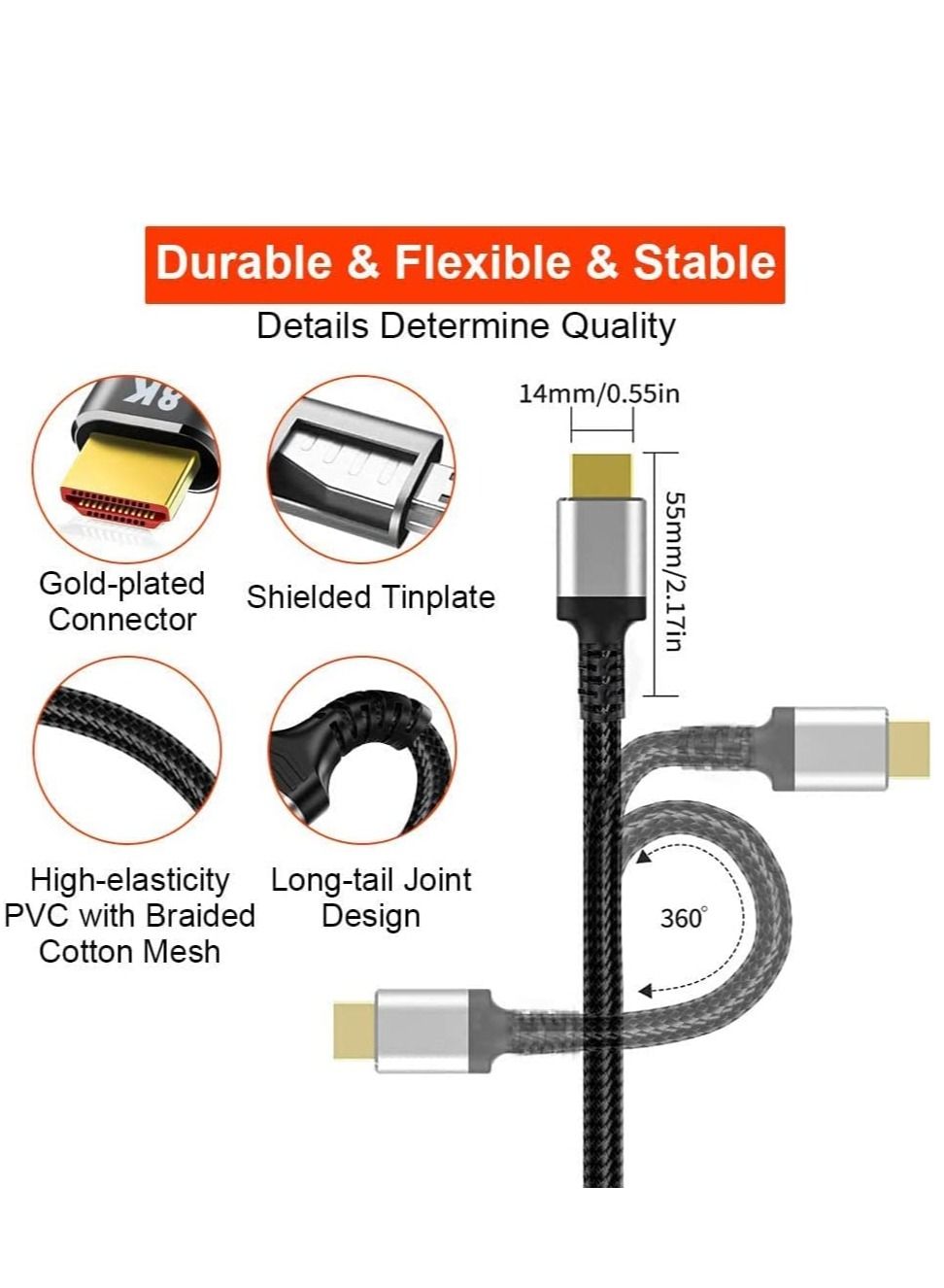 8K@60Hz HDMI Cable 2.1 3.3FT/1M Long for MacBook Pro, KASTWAVE Ultra 48Gbps HD High Speed Slim Flexible Braided Cord 4K@120Hz Dynamic HDR/HDCP 2.2 /3D Fit PS5,TV, Xbox One Switch-1M