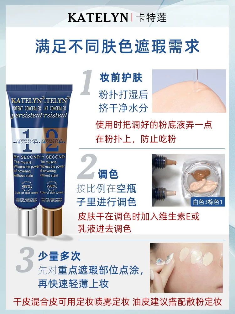 Katerina two-tone tinted liquid foundation long-lasting makeup flagship store genuine dry skin moisturizing natural women's concealer
