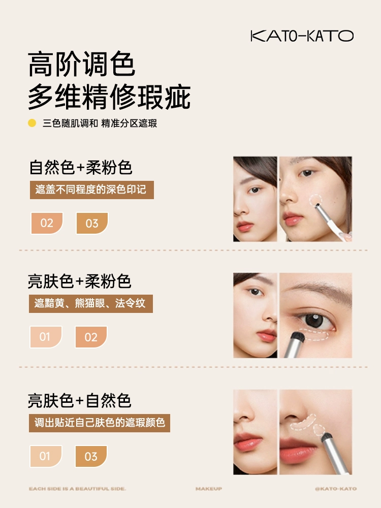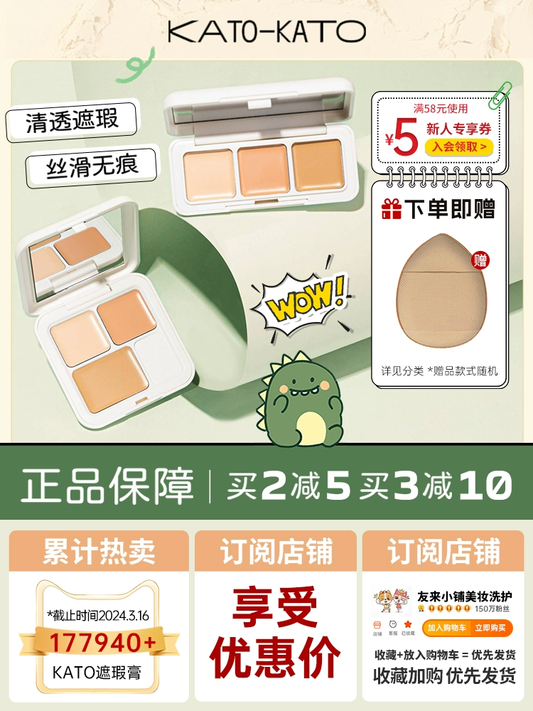Kato concealer cover spot acne, acne, dark circles, koto three -color coverage, highlight repair
