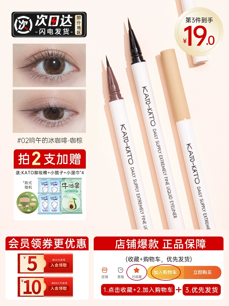 | nameOriginal | KATO liquid eyeliner pen waterproof non-smudge long-lasting eyeliner long-lasting brown ultra-fine lying silkworm pen novice authentic women |