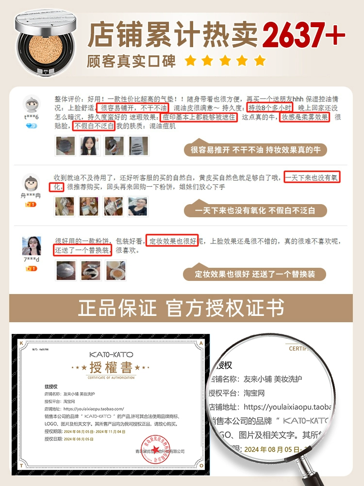 | nameOriginal | KATO original camera air cushion liquid foundation concealer, moisturizing, long-lasting, non-removing makeup, dry mixed oily skin, skin nourishing women's official authentic product |