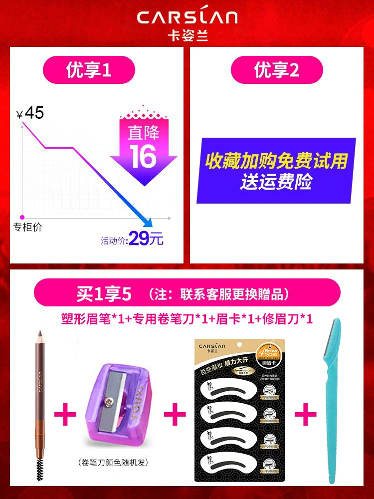 | nameOriginal | Kazilan eyebrow pencil is easy to waterproof, easy to sweat-proof, long-lasting color, not easy to fade and not easy to smudge, natural female knife-cut style for beginners |
