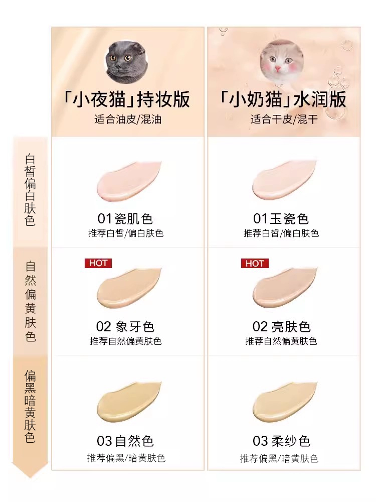 Kazilan Small Breasts Night Cat Liquid Foundation Day and Night Lasting Concealer Moisturizing Long-lasting Non-removing Makeup for Dry Oily Skin Official Authentic