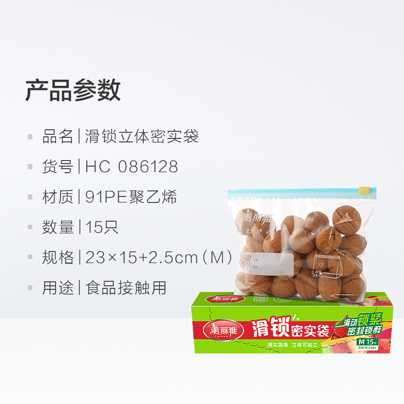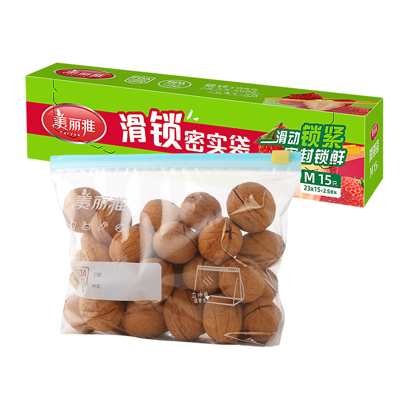 KBQ1 meiliya compact bag sealed bag fresh-keeping sliding lock bag medium size 15 household refrigerator storage and refrigeration