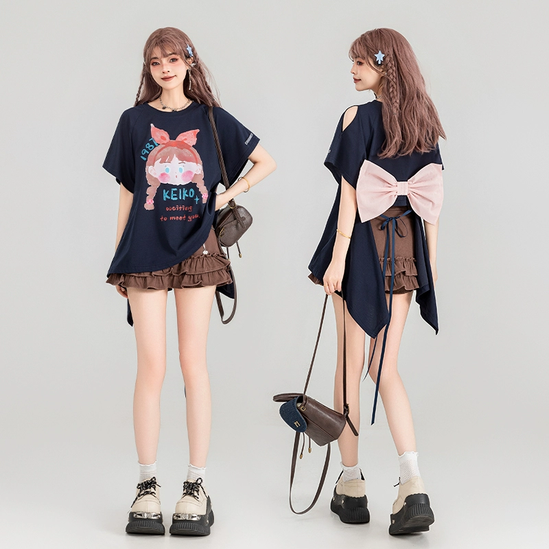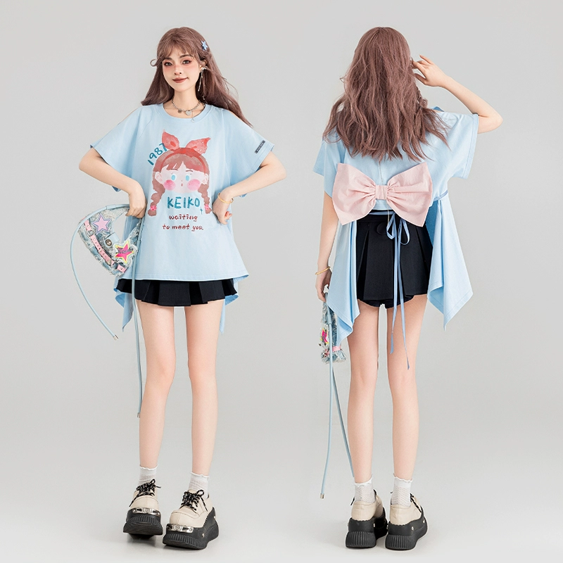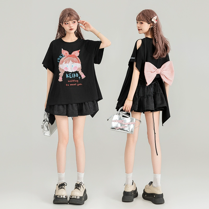 | nameOriginal | KEIKO black summer cute bow short-sleeved t-shirt |